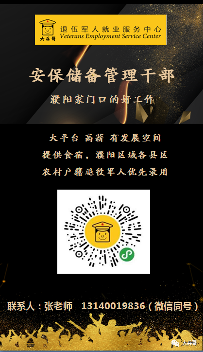 优先录用濮阳地区的退役军人月薪4000,食宿全包