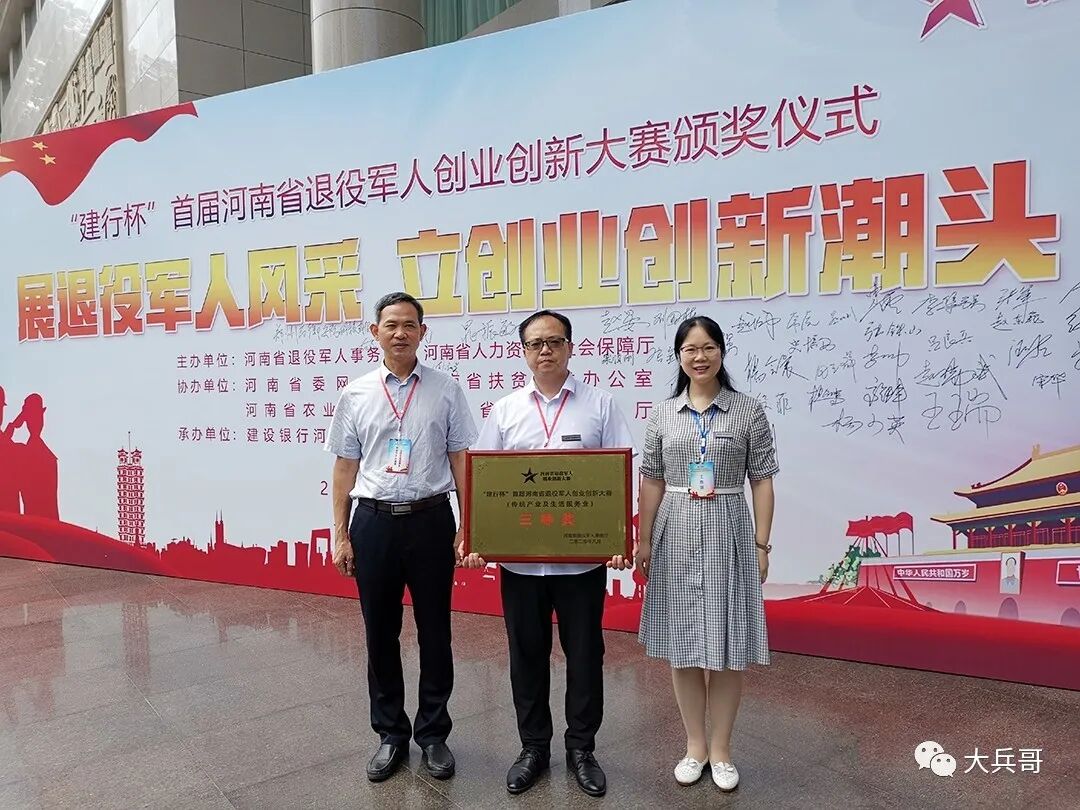 8月17日,“大兵哥”招聘科技助力退役军人高质量就业项目——在河南省首届“建行杯”退役军人创业创新大赛中,荣获“传统产业及生活服务业”组三等奖。